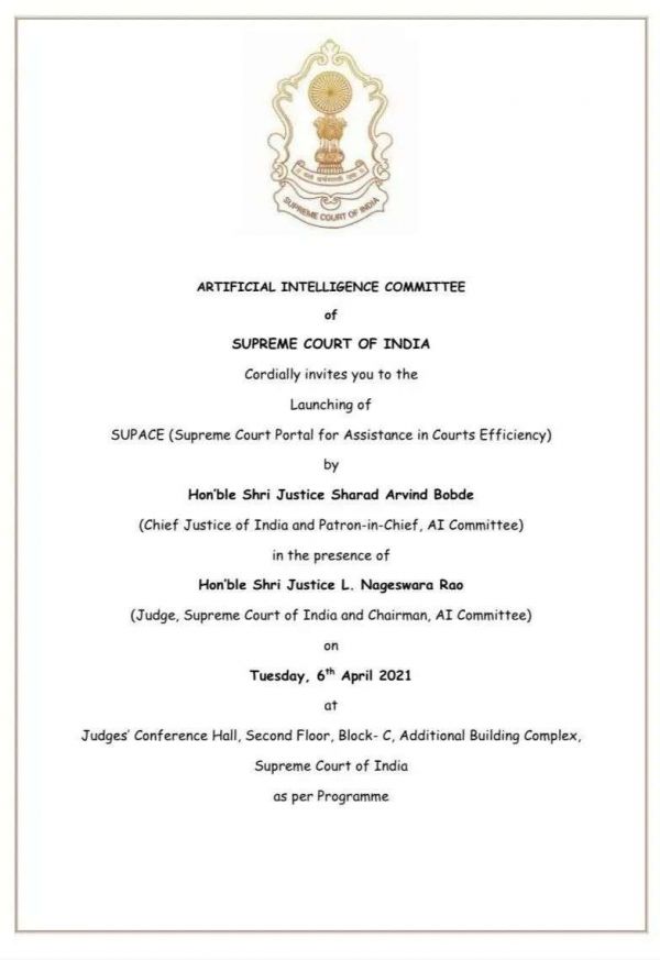 SUPACE 由印度首席大法官 SA Bobde (沙拉德·阿尔温德·博布德)发起。