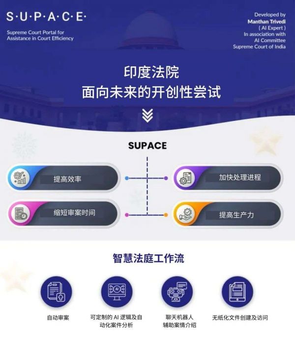本月初,印度最高法院推出了 AI 工具系统 SUPACE,试图借助机器学习技术,高效处理案件提交时同步上交的大量数据。
