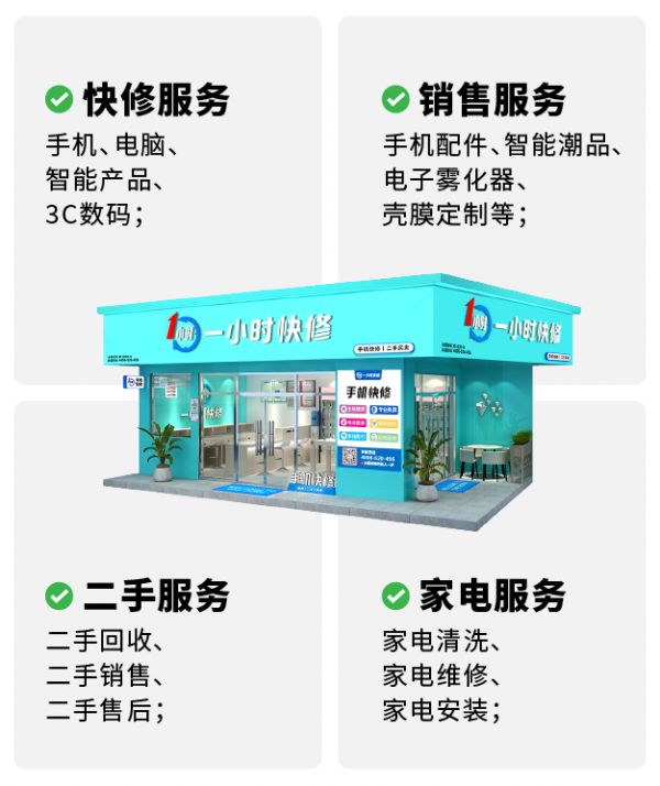 “一小时快修”通过手机维修切入智能产品后市场服务,依托线下1500多家品牌连锁店和10000多家合作门店,构建出线下交付网络;目前,门店已覆盖全国29个省,近300个城市,日均服务单量2万余单,总服务用户量超1000万。“一小时快修”主打“1小时可修复,200天可保修,三次返修可全额退款”的“三可”服务承诺,满足消费者在维修时效、维修质量、售后保障等方面的诉求。