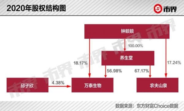 截至2021年4月22日,农夫山泉市值4707亿港元,万泰生物市值1323亿元。根据福布斯实时排行榜,钟睒睒以679亿美元(约4402亿元)身家,位居中国富豪榜第一位、亚洲富豪榜第二位,其中,仅万泰生物就为其贡献了超过990亿元。