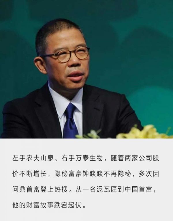 左手农夫山泉、右手万泰生物,随着两家公司股价不断增长,隐秘富豪钟睒睒不再隐秘,多次因问鼎首富登上热搜。
