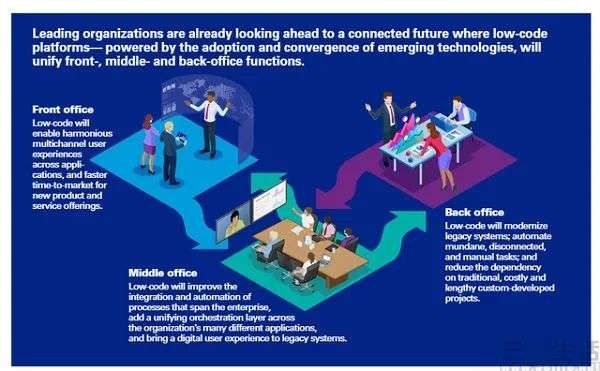 除了传统企业的数字化转型早已是个老生常谈的事情之外,如今低代码的火热还有一个直接的催化剂,就是此次疫情。在疫情席卷全球,线上办公几乎成为标配的情况下,导致相当多企业的传统业务模式被颠覆,而低代码也俨然成为了企业在数字化转型中提升业务敏捷性和效率的关键所在。也使得用低代码开发平台开发ERP、供应链、财务、OA、人力资源和项目管理的全系统,不再成为空想。