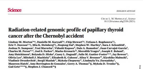 [2] Lindsay M. Morton et al., (2021), Radiation-related genomic profile of papillary thyroid cancer after the Chernobyl accident, Science, DOI: 10.1126/science.abg2538