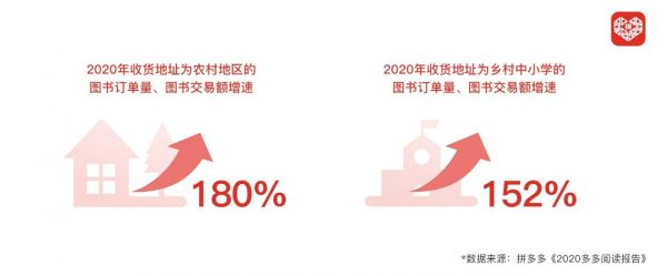 报告显示,2020年度,消费者在拼多多上的图书订单量增速超过189%,其中,广东、山东、河南等人口大省拼单量占据全国前三甲,而新疆、西藏等大西北地区“拼书”增速最快。同时,来自农村地区的图书订单量同比增长超过180%,知识阅读的城乡鸿沟正在不断缩小。