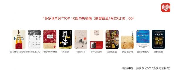▲“多多读书月”TOP 10图书热销榜(数据截至4月20日18:00)