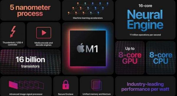 苹果M1采用5纳米制程技术生产,封装了160亿个晶体管