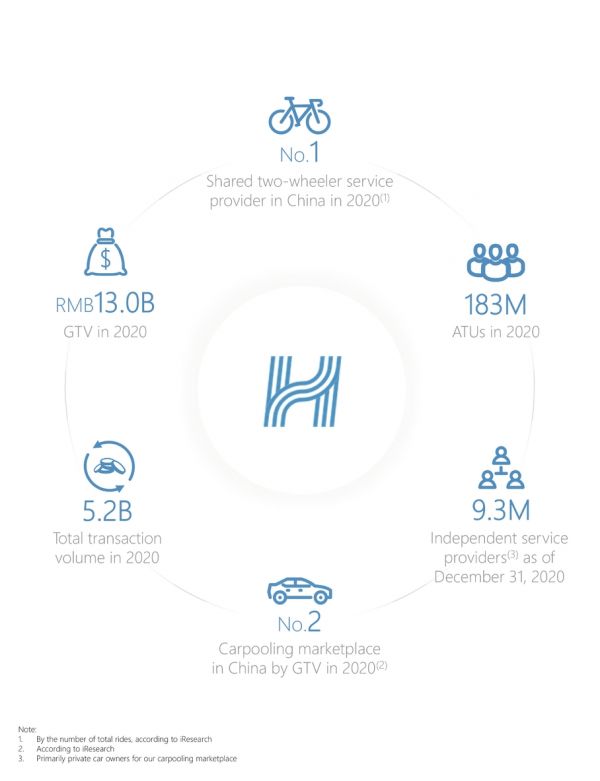 根据艾瑞咨询数据,哈啰出行2020年总交易数52亿次,是中国交易量第三大本地生活服务平台。