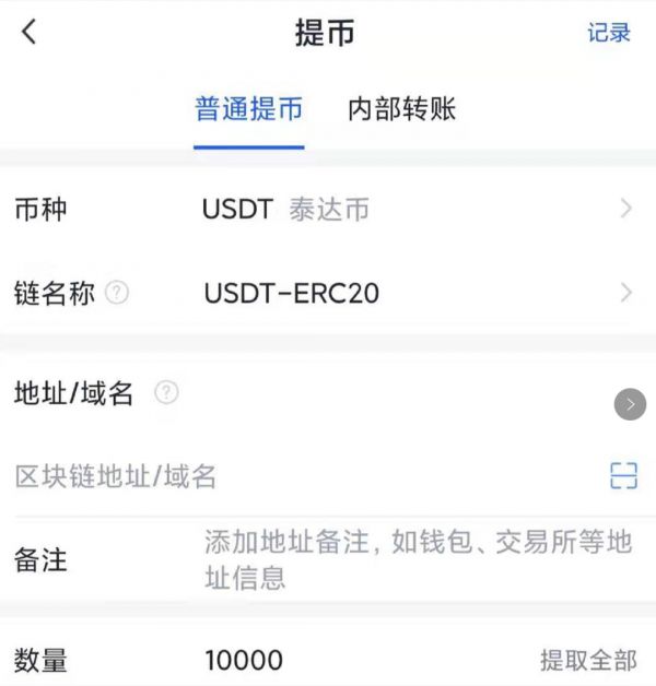 图 | 10000泰达币(USTD)提币转账界面