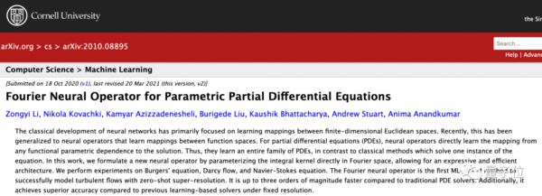 [2]https://arxiv.org/abs/2010.08895[3]https://arxiv.org/abs/1910.03193[4]https://github.com/zongyi-li/fourier_neural_operator