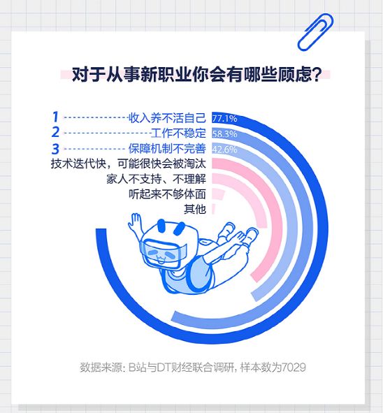 最近,B站也关注到这群迷茫的年轻人,联合DT财经,发布了"新360行2021年青年新职业指南",对于这些尚属新兴的神秘职业,年轻人们还在冷静围观——