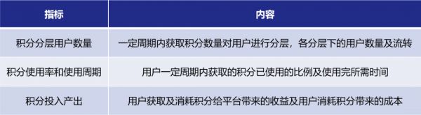 积分体系的良好运转基础是基于数据分析的调控优化,关注积分体系核心指标,保持对积分体系运营情况的敏感度。除日常积分获取量、使用量、存量及进一步拆分数据的监控外,需要重点关注三个关键指标: