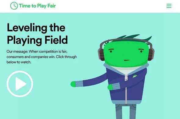 比如在2019年3月,Spotify曾向欧盟递交一份针对苹果的反垄断诉讼,同期还专门上线了一个名为“Time to Play Fair”的网站,控诉苹果对其的不公正待遇和对自家Apple Music的偏袒。
