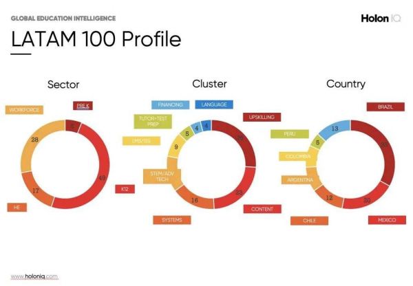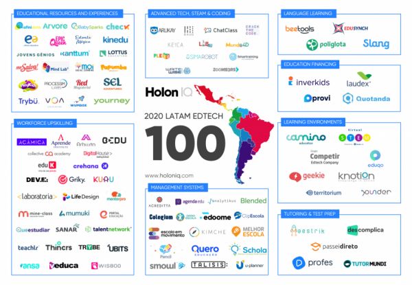 2020年,全球教育智库 HolonIQ 基于对拉丁美洲1500多家数字教育初创公司的综合评估,开出了一份Top100榜单。上榜公司的业务范围几乎涵盖了所有拉美国家,并涉及基础理工(STEM)、编程、外语、商学、先进技术和职业资格考试等广泛的知识领域。