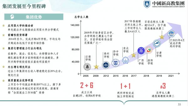 新高教集团创始人、董事会主席李孝轩表示,“我们将坚持“内生+外延”双轮驱动的增长策略,联动高职、本科衔接贯通培养,站稳发展职业教育新赛道,把内涵建设放在优先位置,加大办学基本条件投入,推动规模、质量、结构、平衡发展,坚定内涵驱动高质量发展的战略定力,实施外延并购“社会、经济双效益”引领,为未来发展储蓄强劲动能。持续挖掘集团化办学独特优势,做好顶层谋划,快速复制模式,迅速释放潜能,提升盈利能力,保持合理的收益增长, 为投资人创造更稳定、更可持续的投资回报,为社会培养更多高素质技术技能人才,服务地方经济社会发展。”