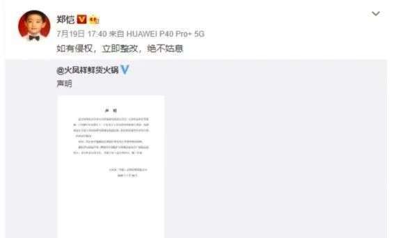 随后,郑恺通过微博回应了抄袭事件,表示“如有侵权,立即整改,绝不姑息”。