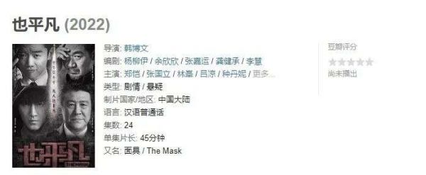 截至目前,《也平凡》尚未定档,豆瓣显示或于2022年开播。不过,《也平凡》最后一次出现在光线传媒公告中,则是光线传媒的2019年年报,《也平凡》官微最近一条微博要追溯到2019年6月。