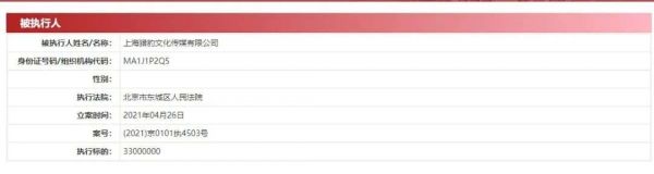 4月26日,上海猎豹文化传媒有限公司新增一条被执行人信息,执行标的3300万元,执行法院为北京市东城区人民法院。