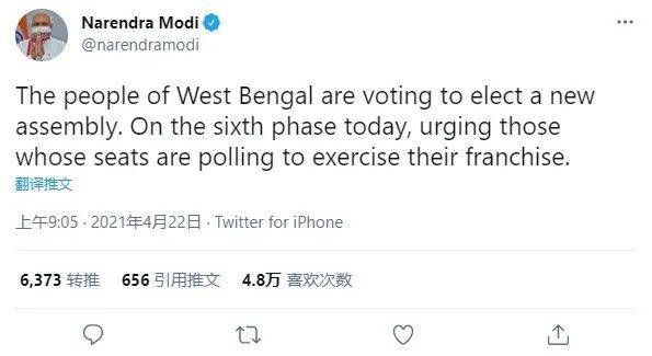 在疫情最吃紧的时候,莫迪还是在推特上呼吁选民们尽快投票。/ Twitter @narendramodi