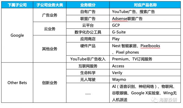 由于从2020年开始,公司财报披露的收入结构较之前有所调整,因此在进行具体的财报解读之前,我们再来回顾一下Alphabet的最新业务架构。