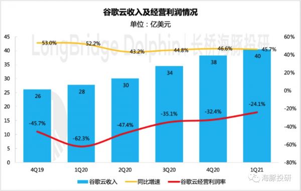 本季度,谷歌云如市场预期,发力效果明显。除了收入增速继续高增长态势,经营亏损也在继续缩窄。
