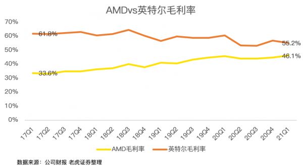 从盈利能力方面来看,AMD一季度毛利率46.1%,创近年来新高。