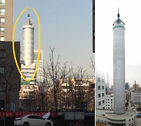 图注:国家微重力实验室的落塔(乔辉2018年拍摄于北京希格玛大厦北侧)。