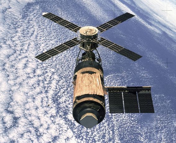 在前苏联太空竞争的压力下,美国于1973年用土星五号火箭发射了他们的空间站:天空实验室(Skylab)。天空实验室重达80吨,前后接待了三批航天员。1979年完成历史使命,坠入地球大气层焚毁。