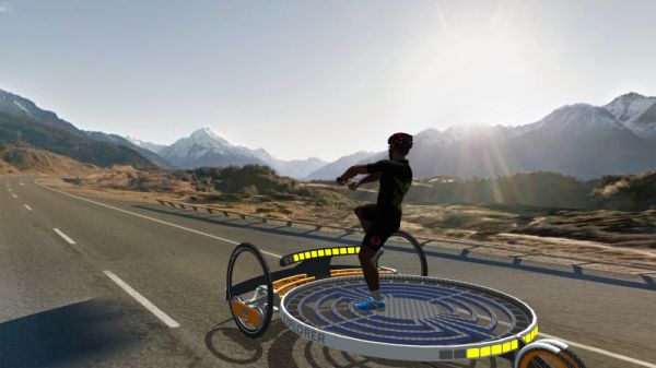 于是,我们在VR中开发了虚拟的多功能运动平台exerboard,类似于某种圆形的平衡车。