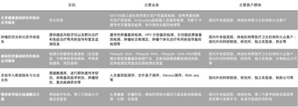 按照场景,华大基因将这些服务分为五大类:生育健康、肿瘤防控及转化医学、感染防控、多组学大数据服务与合成业务、精准医学检测综合解决方案。这些业务分别服务于医院、体检机构、科研院校、研究所、药企、第三方医学检验实验室等。
