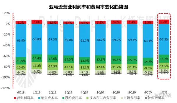 b. 亚马逊本季度毛利461亿美元,毛利率42.5%,超过了市场预期的41.3%。