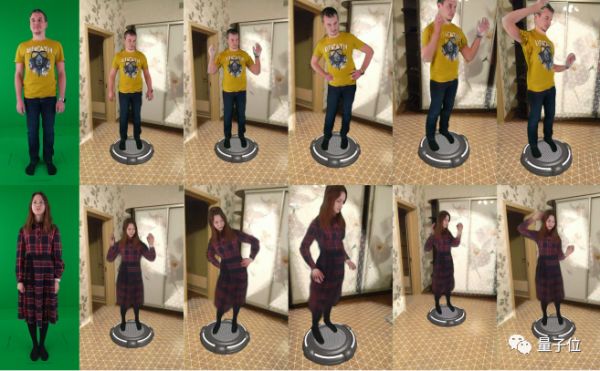 效果如文章开头所展示的图像,左边是示例源帧,其余的图像是左边视频人物的“化身”。在简单的增强现实程序做的背景下,呈现出了模特先前并没有摆过的各种姿势。