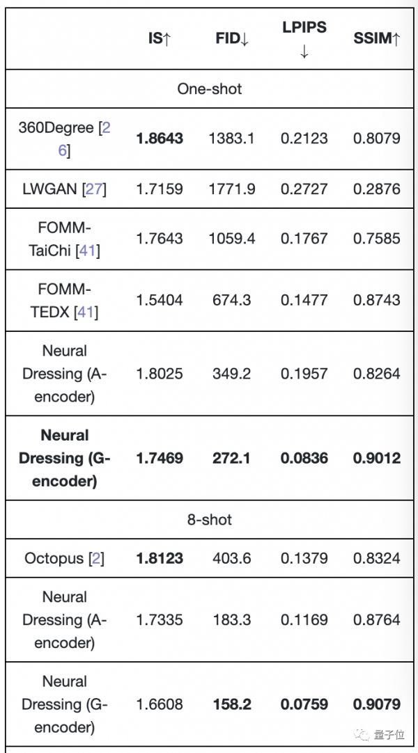 研究人员使用仅两个人的People Snapshot数据集将他们的神经装扮方法与其他各种方法(如360Degree等,见表)进行比较。