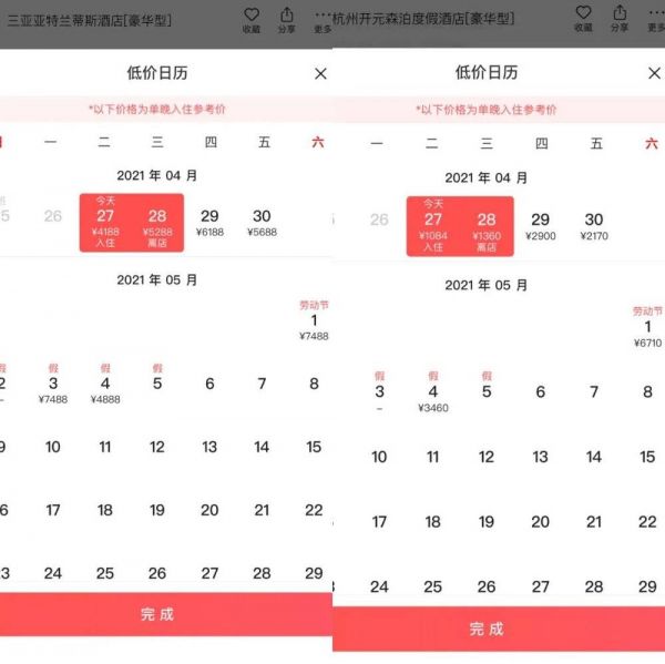 因为2019年《亲爱的,热爱的》热播,而爆火的三亚亚特兰蒂斯酒店,平常一间双床房的价格为2800元-3200元/天,随着五一假期的来临,价格涨至4188元、5288元,五一当天价格为7488元。