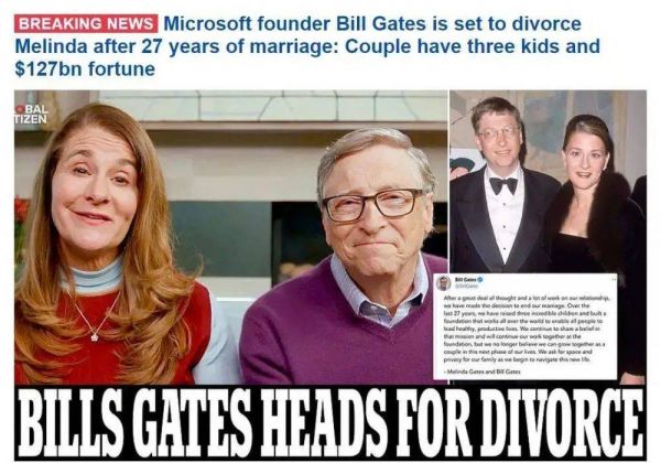 今天(美东时间5月3日),在BBC、《纽约时报》等一众媒体争相报道后,微软创始人比尔·盖茨(Bill Gates)离婚的消息成为霸占世界各国媒体的头版头条——比尔·盖茨和梅琳达在共同走过27年后,突然宣布双方将结束这段婚姻关系,目前已正式进入离婚程序中。