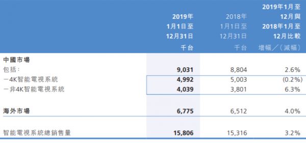 创维在这方面表现不佳,其实和彩电行业的行情有关。目前彩电行业已是夕阳产业,规模在不断缩小。奥维云网数据显示,2019年中国彩电市场全年零售量为4772万台,同比下降2.0%,零售额1340亿元,同比下降11.2%。百户拥有量下降了2.4%,为119.3台,是6年来首次下降。