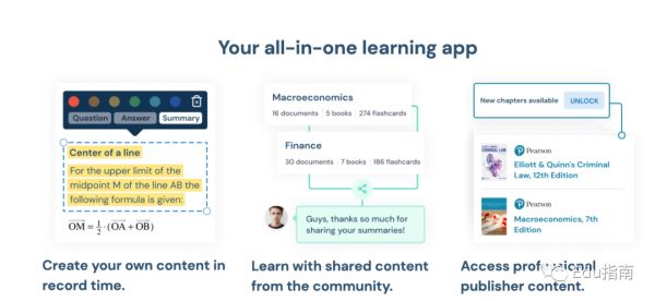 简而言之,它既是(修订)内容市场,又是学习的生产力平台,因为它可以帮助用户创建自己的学习(或课程)计划,并为他们提供方便的工具,例如数字魔术笔,可自动将突出显示的文本转换为抽认卡(备注:抽认卡一般效用在于帮助记忆),而由此产生的“智能”抽认卡也应用了间隔重复学习的原理,以帮助使所研究的内容保持不变。