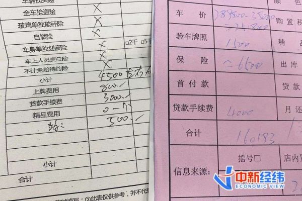 中新经纬在走访过程中发现,在前述4S店提供的纸质贷款方案中,贷款收费项目都被表述为“贷款手续费”,而部分销售在口头表述的过程中仍称为“金融服务费”。有律师曾向中新经纬指出,4S店或经销商收取金融服务费没有法律依据,而且存在大量违规问题。