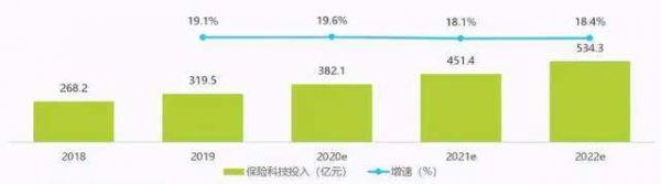 根据艾媒资讯发布的《2020年中国保险科技行业研究报告》显示,未来保险科技的投入将迎来稳步增长,预计到2022年保险科技的投入资金将达到534.3亿元。