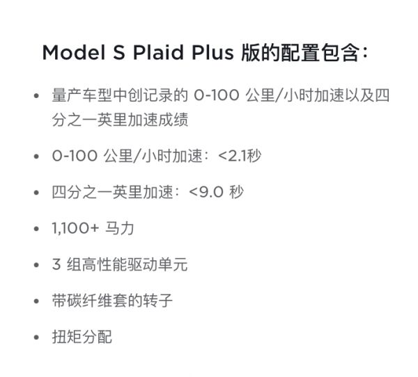 我们可以从特斯拉的官网看到,全新的Model S性能版的百公里加速官方写的是小于2.1秒,而这个数据意味着没有一台燃油超跑可以在百公里加速超越特斯拉,而这一价格才120万。