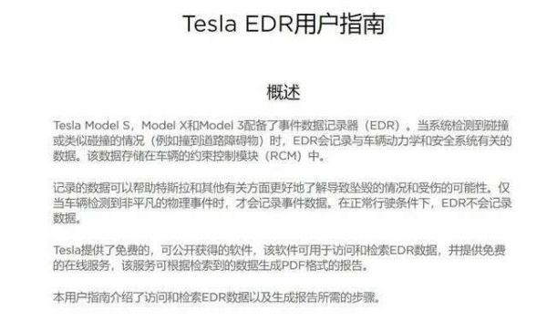 特斯拉旗下车型中,除早期的Roadster之外,Model S/3/X/Y均配备EDR。