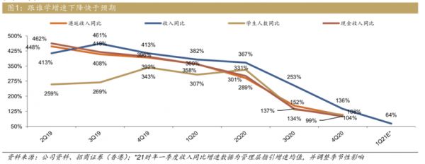 虽然营业额在增加,但是不论从收入还是学生人数来说,跟谁学自2020年开始就出现了增速放缓的问题,甚至逐季递减。