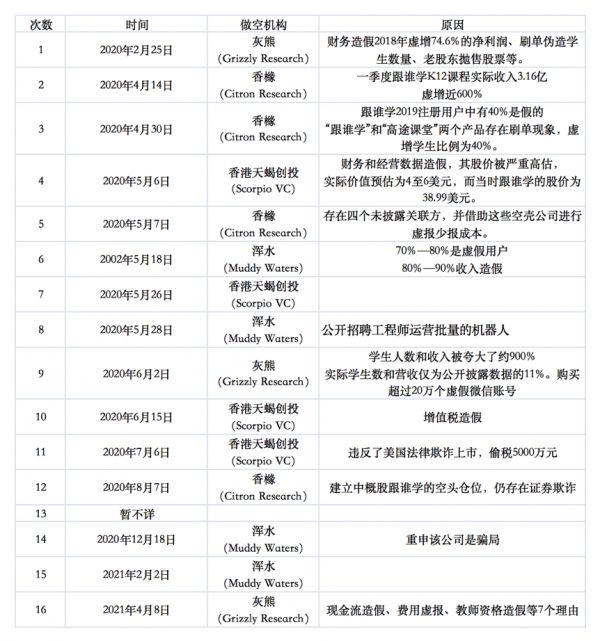 也有业内人士称,这次的更名事件是为了应对其16次做空的局面。2020年,跟谁学遭遇浑水、香橼、天蝎、灰熊等机构的做空,主要是针对跟谁学虚增用户,进而虚增收入和利润,利用关系方捏造财务等行为。