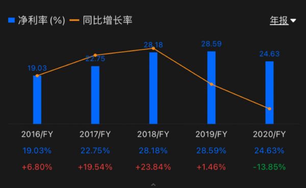 更名后,麦当劳在2018年中美餐饮上市公司中位居榜首,市值达到1289亿美元,截至发稿日期,麦当劳报236.08美元,总市值1761.39亿,三年内总市值上涨近36%。但是净利润同比增长率从2018年开始逐年回落。