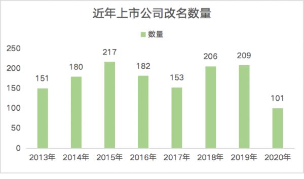 近年来,国内改名换姓的上市公司不在少数。公开统计显示,从2013年到2020年,国内更名的公司已累计达1399家。