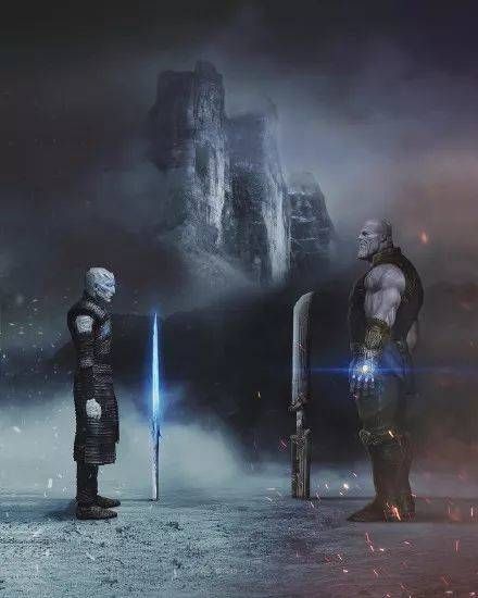 图中二人,正是两部的大反派:左边,《权游》里的夜王。右边,《复联》里的灭霸。