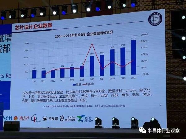 从魏少军教授在去年ICCAD公布的数字来看,2020年我国芯片设计企业共计2218家,同比增长了24.6%。而从整体上看,在2010到2019年我国芯片设计企业数量增长的变化情况中可以看到,2016年是我国芯片设计企业增长的一个高峰期。而这也与其他地区涌现出大量的半导体初创企业的时间相同。