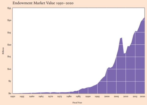 耶鲁大学捐赠基金的市场价值变化