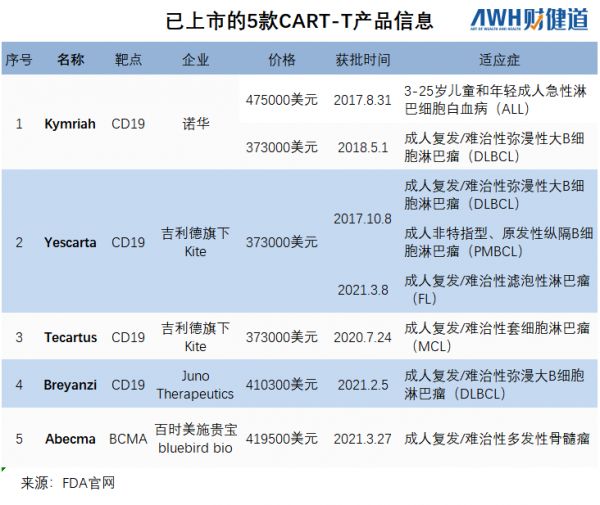 ▲ 全球已上市car-T产品一览 制图/财健道