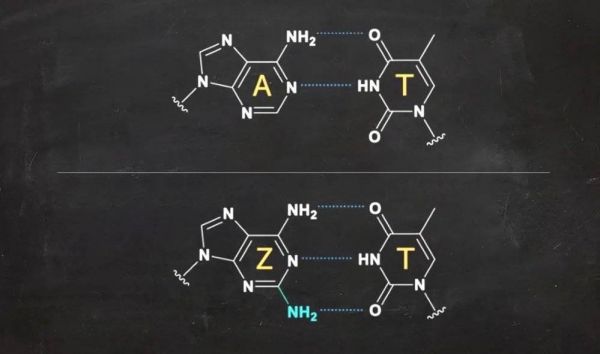 在进一步分析后,他们发现在这种噬菌体中,A被Z所取代,与T形成了一种更强的键合。