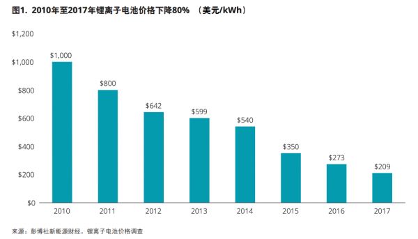 而特斯设想的「家用发电厂」,相信会随着电池价格的进一步下降,降低准入门槛,过去几年间随着技术的发展电池价格已经下降了不少,从 2010 年的 1000 美元每千瓦时降低到了如今的不足 200 美元每千瓦时。